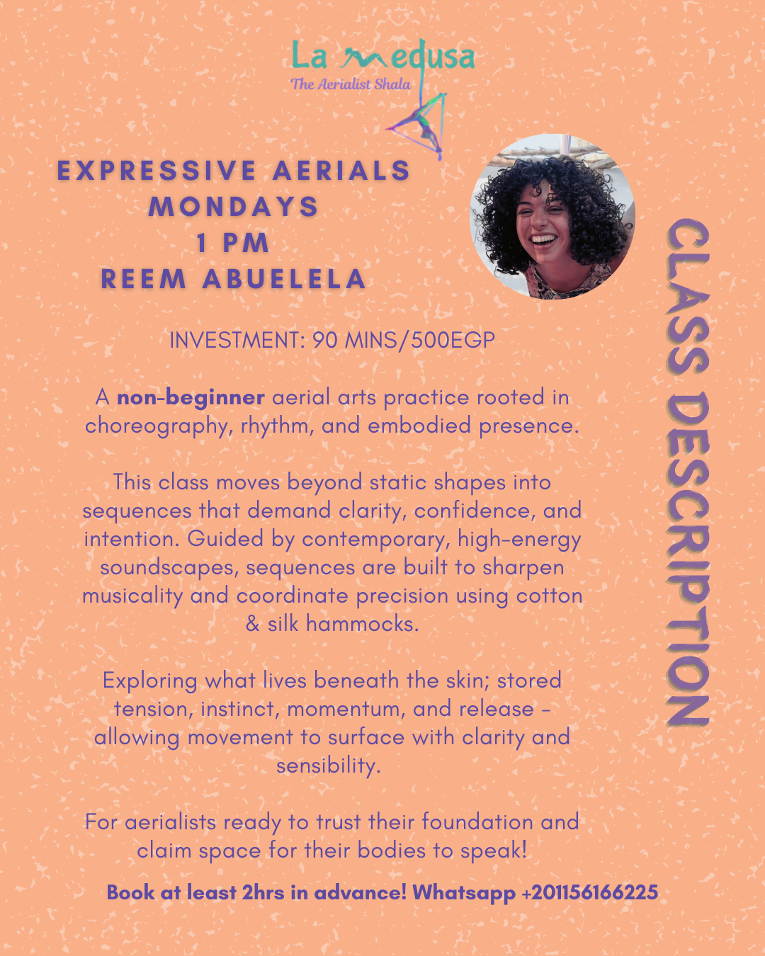 This class moves beyond static shapes into sequences that demand clarity, confidence, and intention. Guided by contemporary, high-energy soundscapes, sequences are built to sharpen musicality and coordinate precision using cotton & silk hammocks.