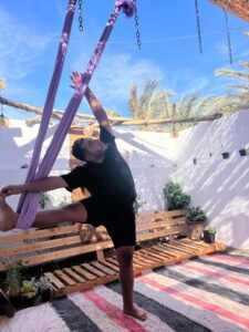 The “intro to silk” session with Reem was extremely fun and empowering. Although being familiar with the hammock, the silk always looked a bit intimidating… truth is Reem made it feel so approachable and entertaining so you can really enjoy floating in the air with no fear. Plus the studio which I have been to for aerial classes too is always very welcoming and sets the perfect atmosphere for the practice.