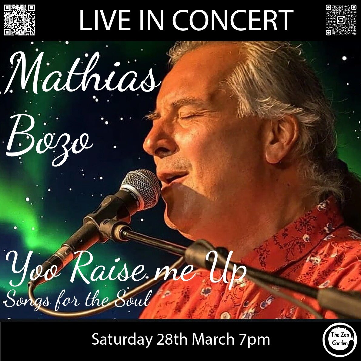 This concert is a lovely musical massage for the heart and soul: The german pianist and singer Mathias BozΓ³ performs and celebrates mostly well known songs like bridge over troubled water, shape of my heart, stand by me and others to take you on a journey through love and emotion, and the best things we can do to fulfill our souls.