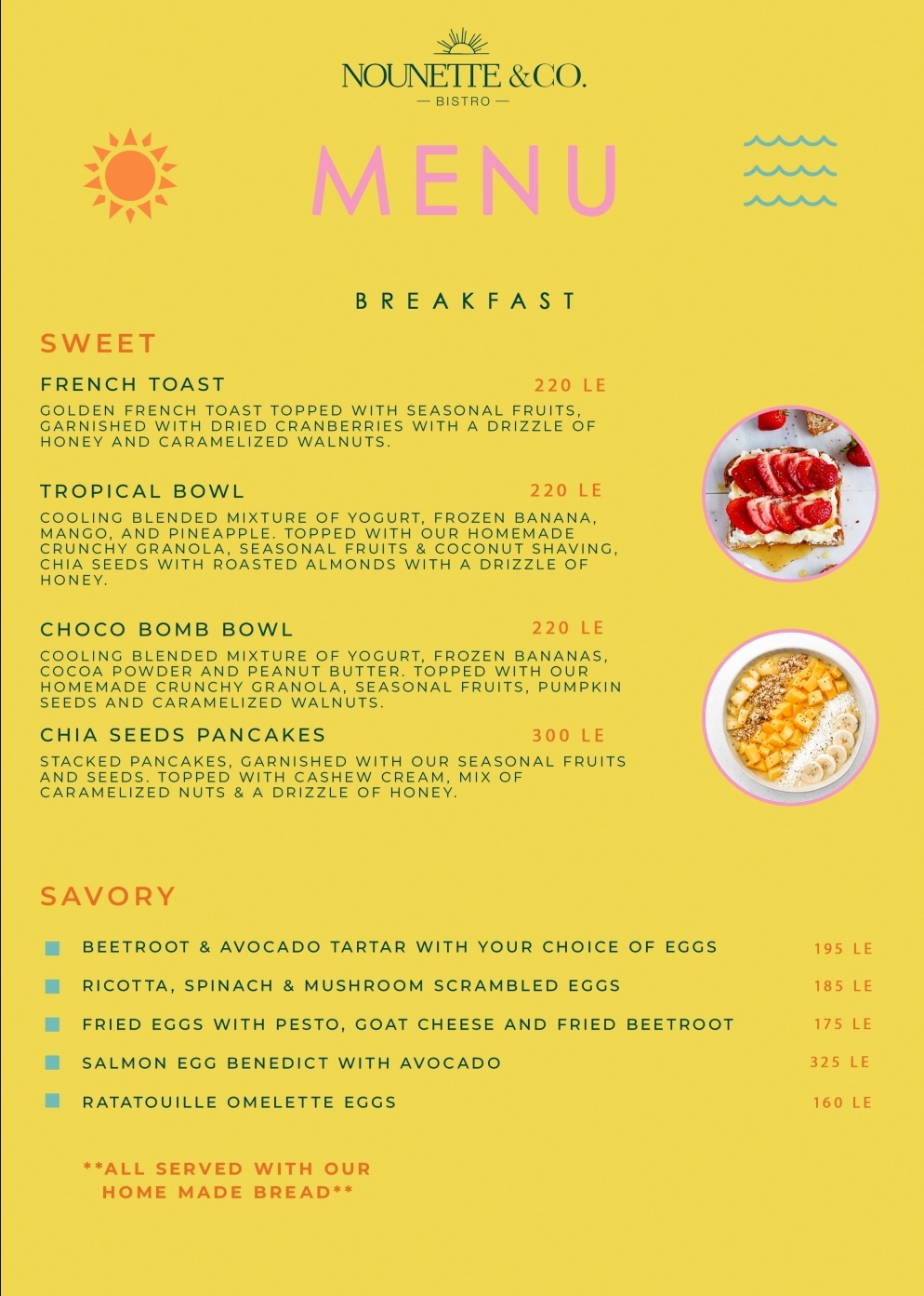 Nounette & Co is bringing you the International & Egyptian cuisine all the way to your doorstep. To indulge thr sensation directly to your belly and make you forget about the heat ๐